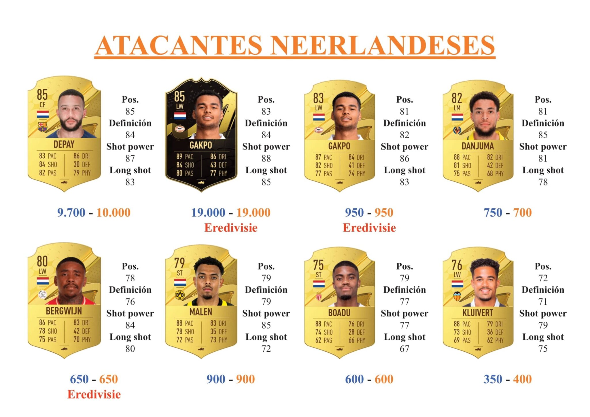 Con. Show Players. Luuk de Jong's card is rated 79, he is 188cm | 6'2" tall, right-footed Netherlands striker (ST) that plays for PSV in Eredivisie with Med/Med work rates. He has 5-star weak foot and 3-star skill moves, He does not have a real face in-game. He has been used in 23,088 games with a GPG (goals per game) of 1.020.