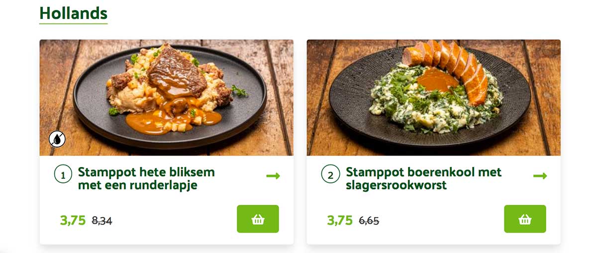 Kies uit alle 24 maaltijden die Uitgekookt op het moment aanbiedt. Deze maaltijden zijn opgedeeld in vier categorieën: Hollandse pot. Italiaans. Oosters. Werelds. Kies de maaltijden die je wilt en het bezorgmoment dat je uitkomt. Na het afrekenen hoef je alleen maar te wachten tot je verse maaltijden worden thuisbezorgd.